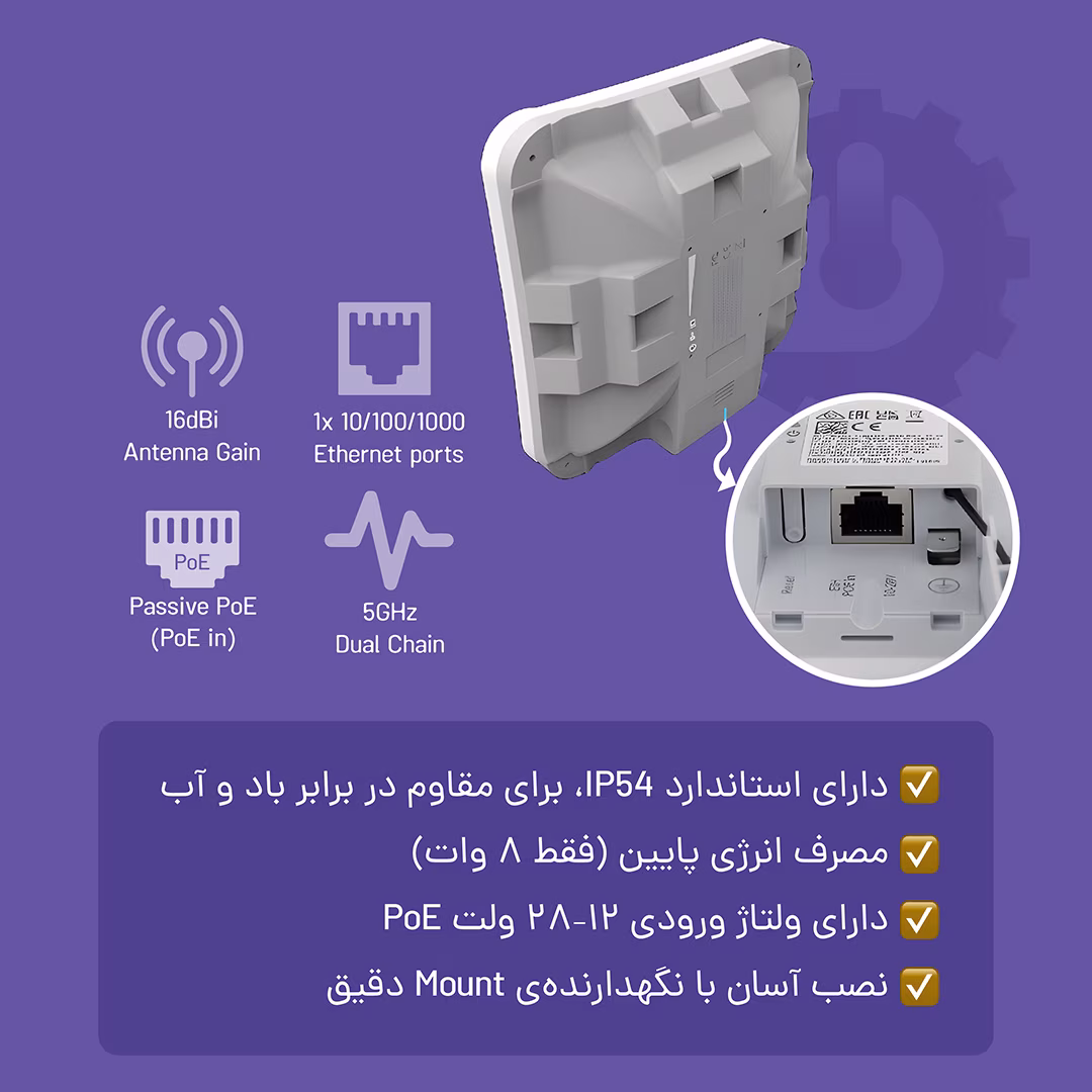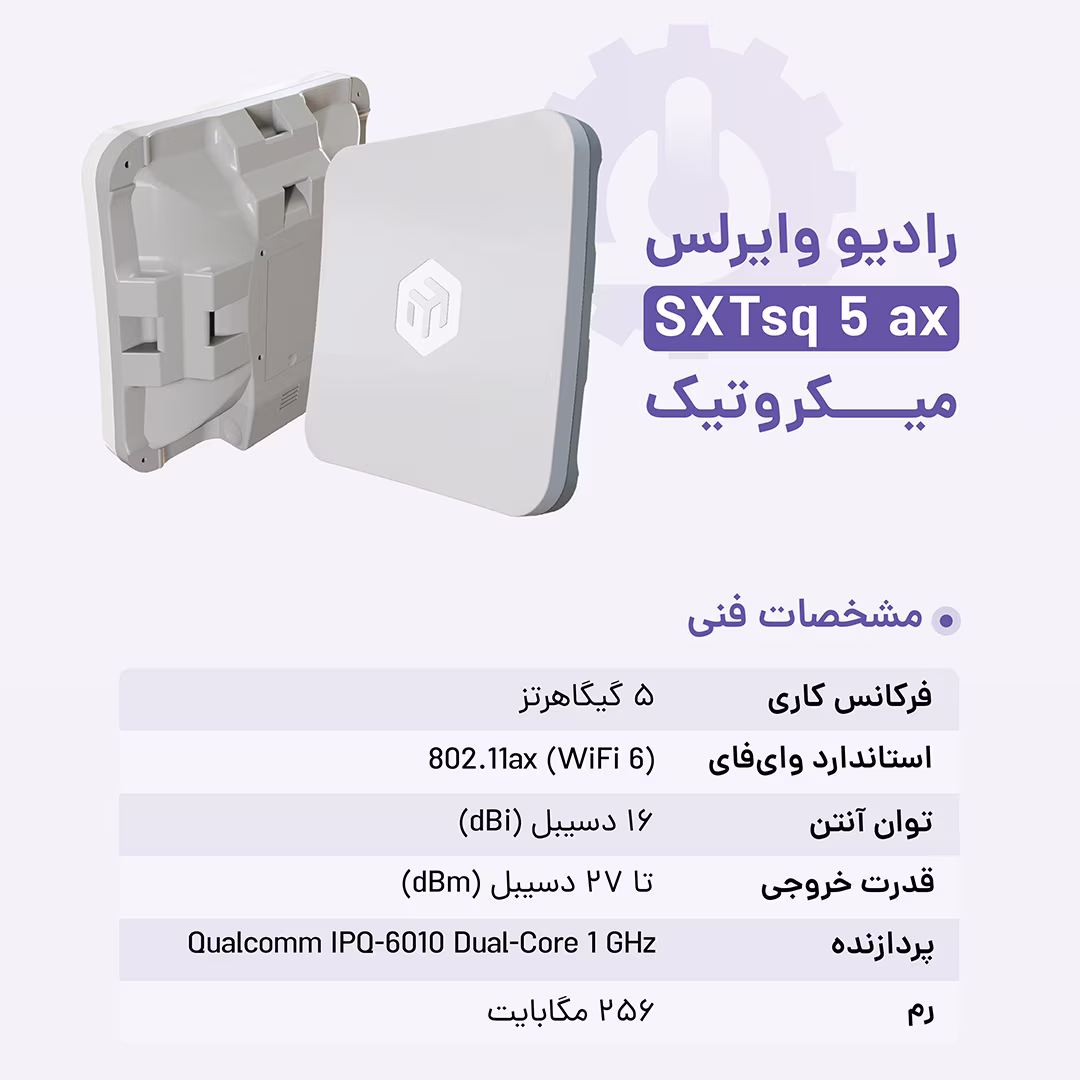 این مدل با طراحی فوقالعاده سبک (فقط ۵۰۰ گرم) و آنتن ۱۶ dBi داخلی، یک راهحل حرفهای برای ایجاد لینکهای Outdoor پایدار تا چند کیلومتر است. با پشتیبانی از باند ۵ گیگاهرتز و نرخ انتقال داده تا ۶۰۰ مگابیت بر ثانیه، SXTsq 5 ax بهراحتی نیازهای کاربران حرفهای، ISPها و پروژههای سازمانی را برطرف میکند.